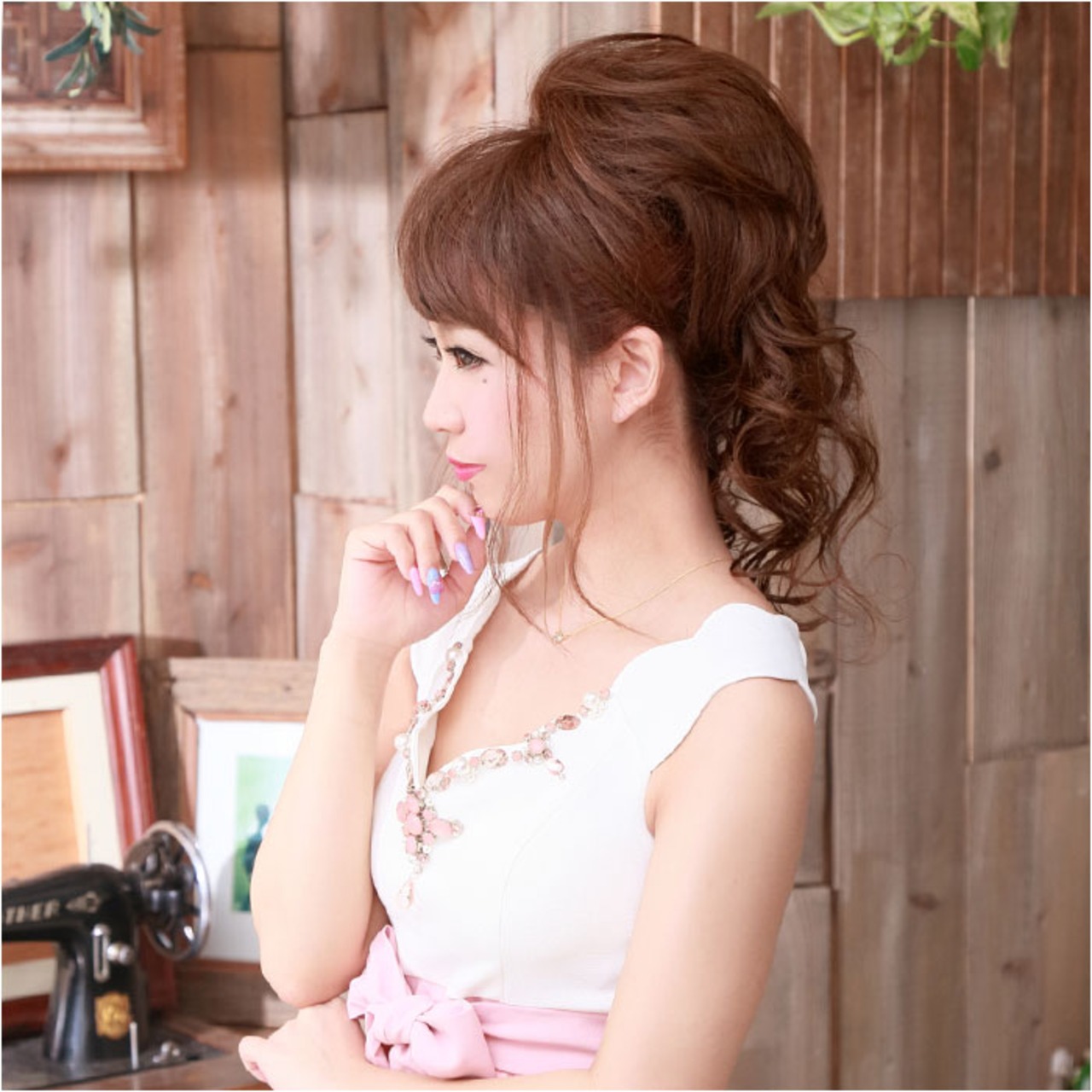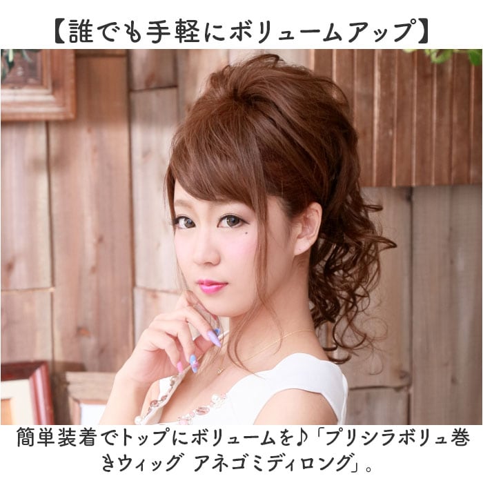 ・簡単装着でトップにボリュームを♪「プリシラボリュ巻きウィッグ アネゴミディロング」。