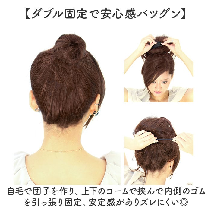 ・自毛で団子を作り、上下のコームで挟んで内側のゴムを引っ張り固定。安定感がありズレにくい◎