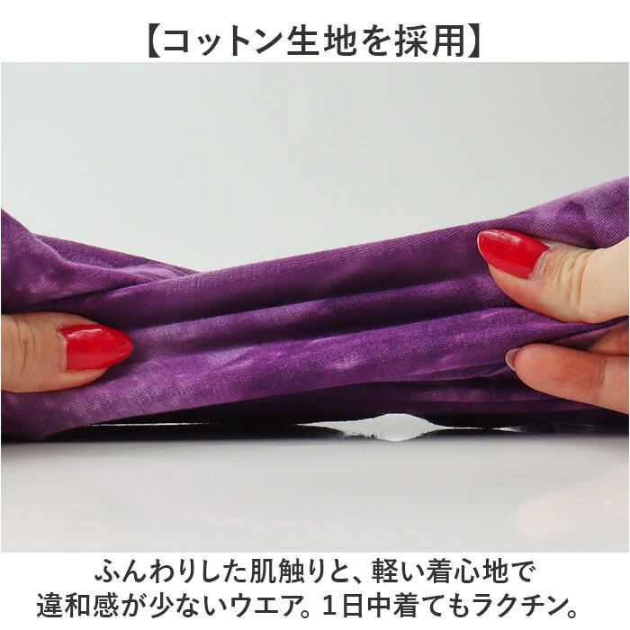 ・ふんわりした肌触りと、軽い着心地で違和感が少ないウエア。1日中着てもラクチン。