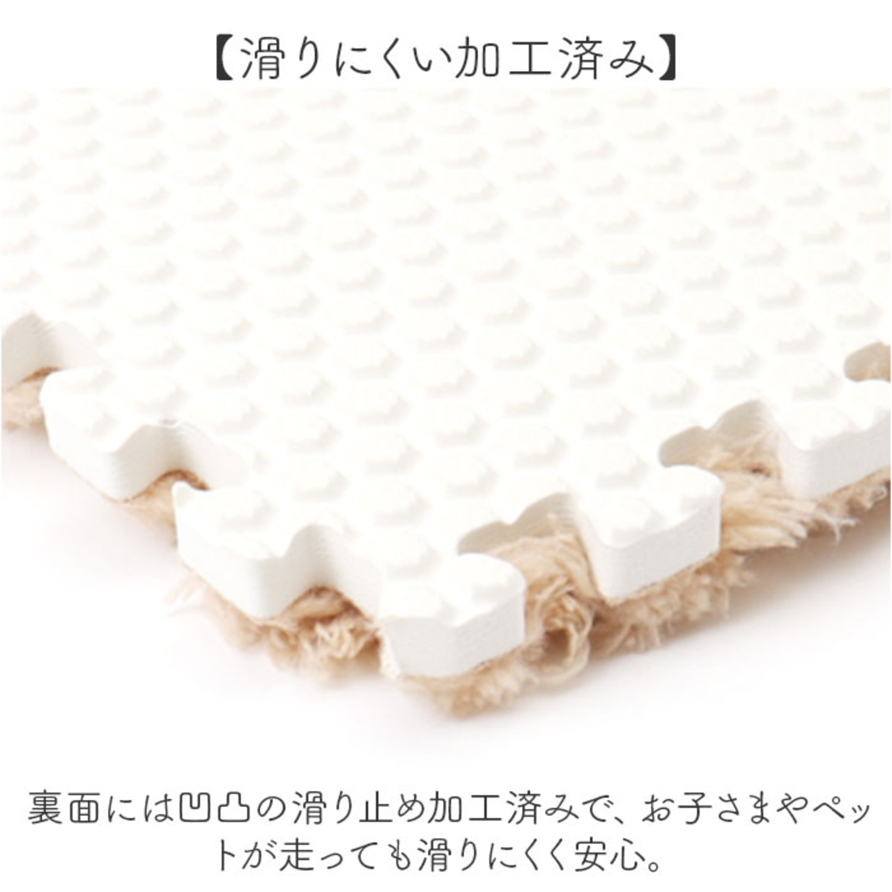 ・裏面には凹凸の滑り止め加工済みで、お子さまやペットが走っても滑りにくく安心。
