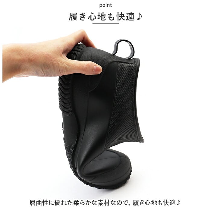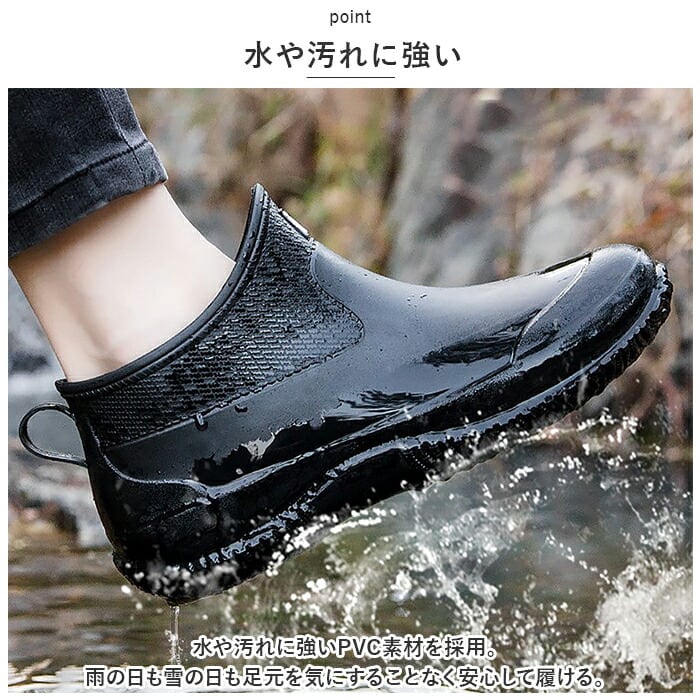 ・水や汚れに強いPVC素材を採用。雨の日も雪の日も足元を気にすることなく安心して履ける。