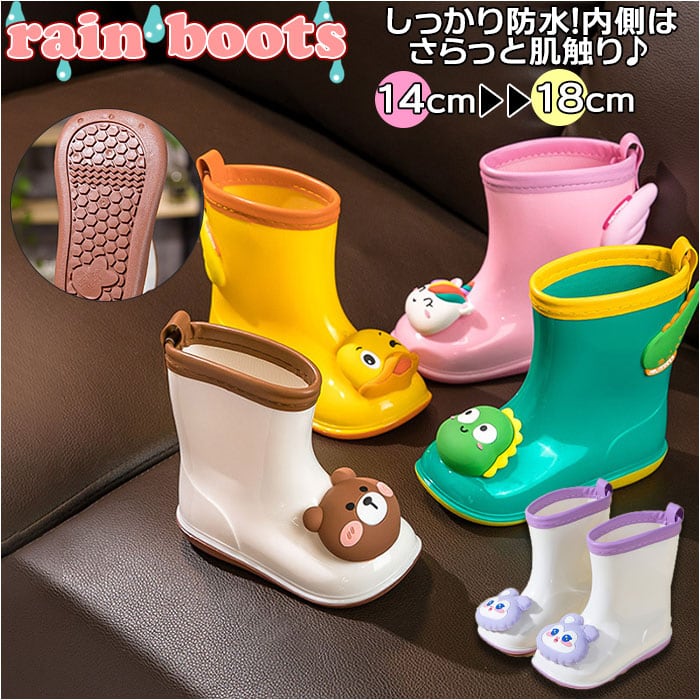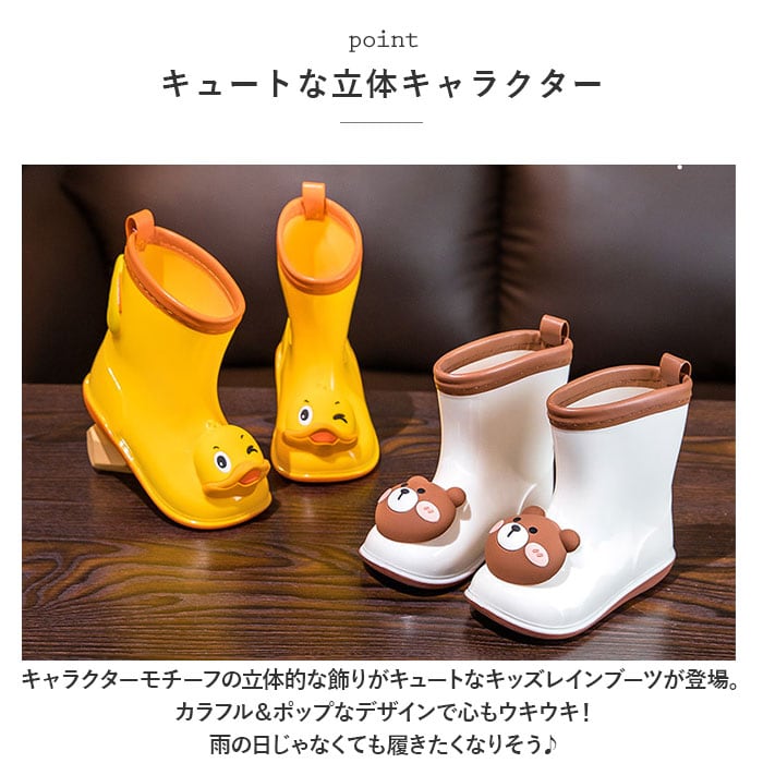 ・キャラクターモチーフの立体的な飾りがキュートなキッズレインブーツが登場。カラフル&ポップなデザインで心もウキウキ!雨の日じゃなくても履きたくなりそう♪