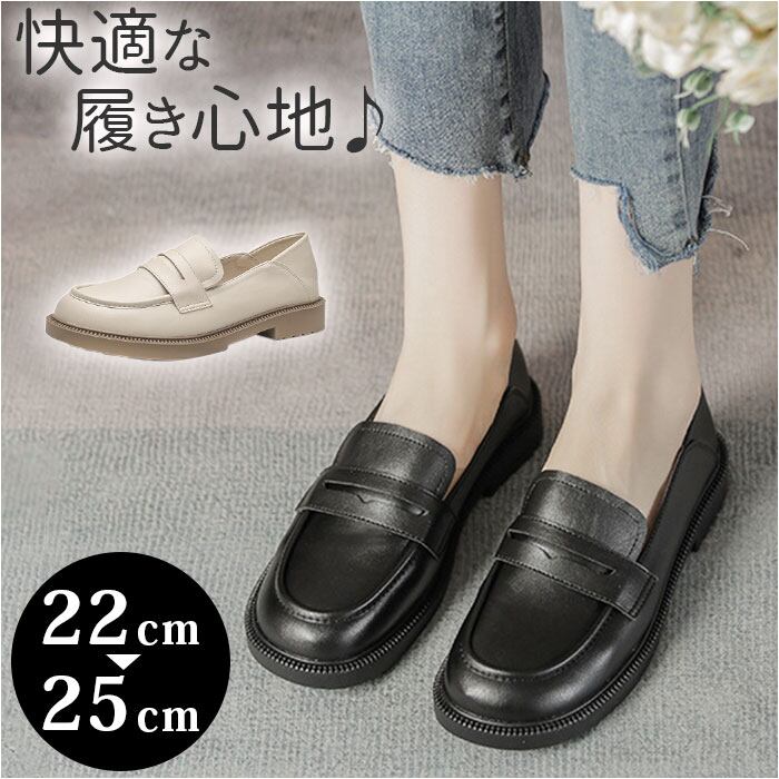 ローファー レディース 学生 通販 合皮 ラウンドトゥ コインローファー ローヒール フラットシューズ スリッポン 歩きやすい ヒール 2.5cm おしゃれ 大人 かわいい 柔らかい 疲れにくい 通学 通勤 シンプル 靴 シューズ レディース靴