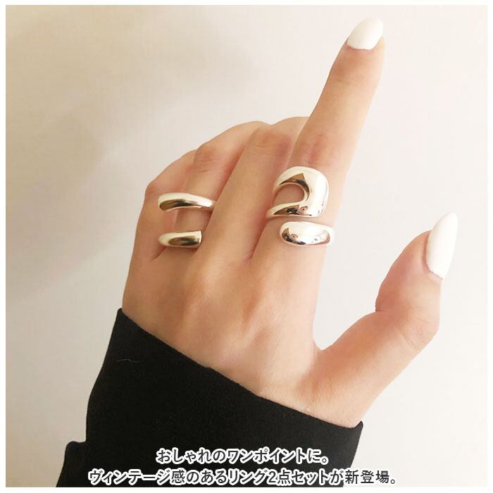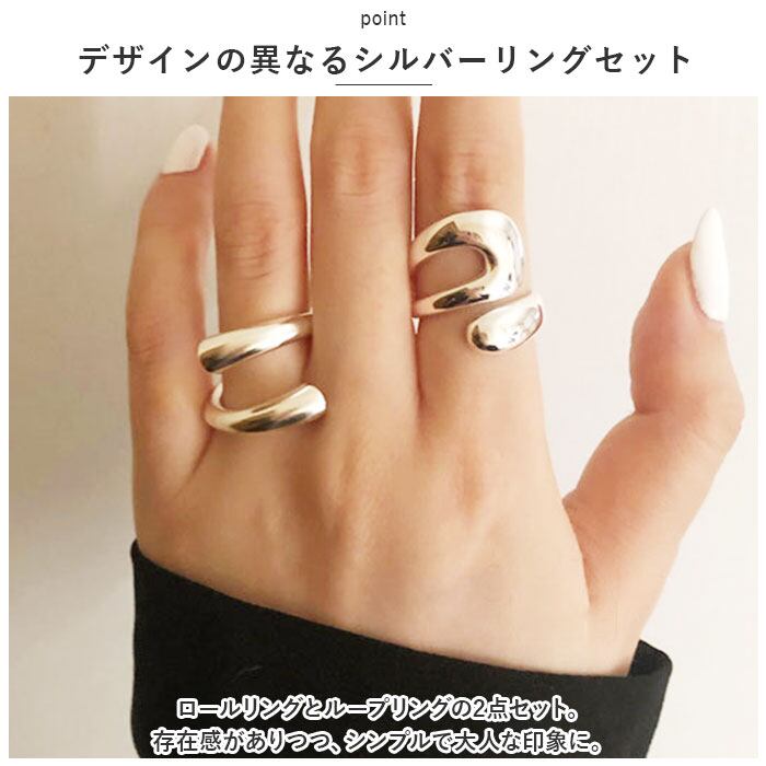 ヴィンテージ シルバーリング 通販 指輪 ジュエリー フリーサイズ 2点セット 2個 シルバー リング ロールリング ループリング シンプル オフィス 通勤 アンティーク調 カジュアル 重ね付け アクセサリー 大人 レディース かわいい おしゃれ