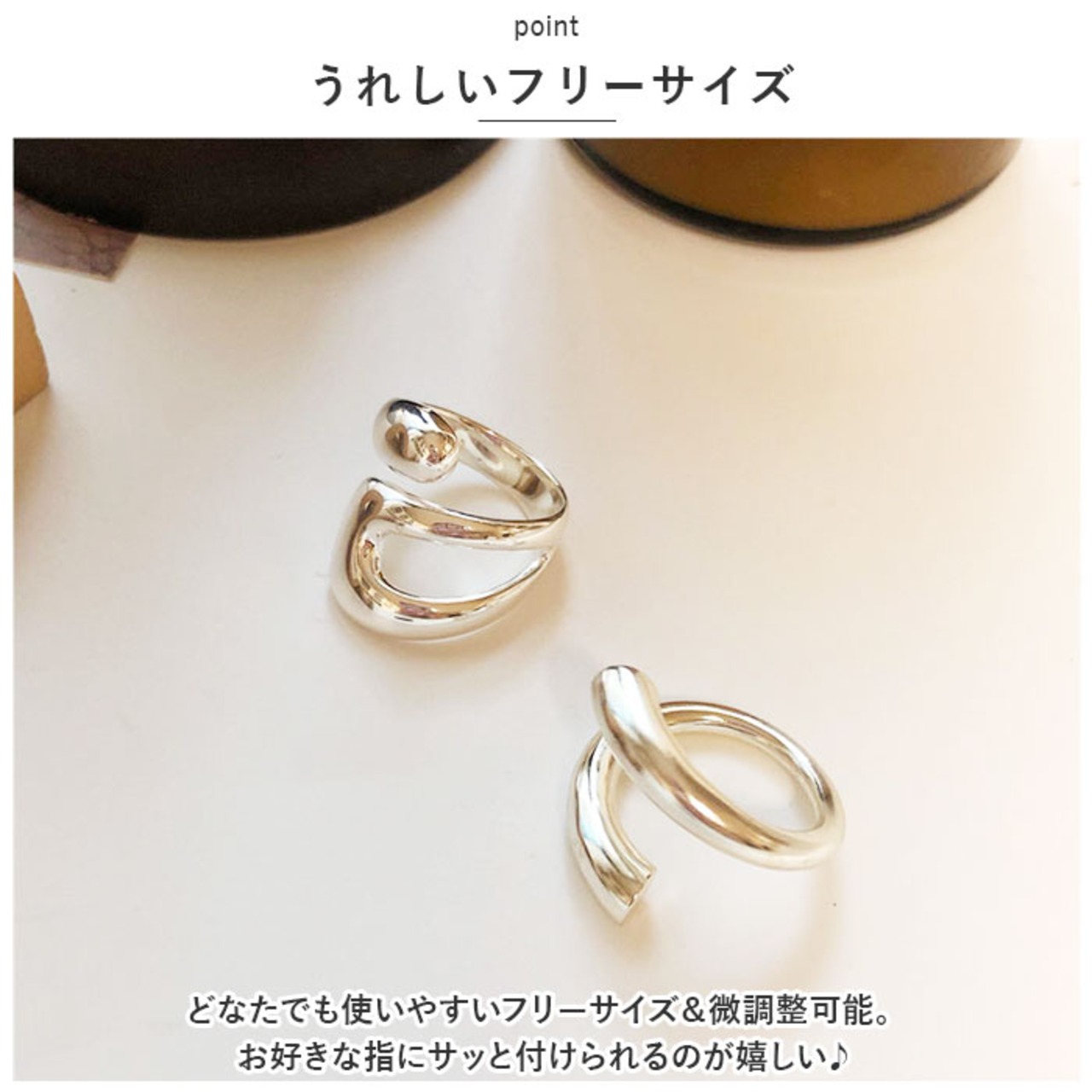 ・どなたでも使いやすいフリーサイズ&微調整可能。お好きな指にサッと付けられるのが嬉しい♪
