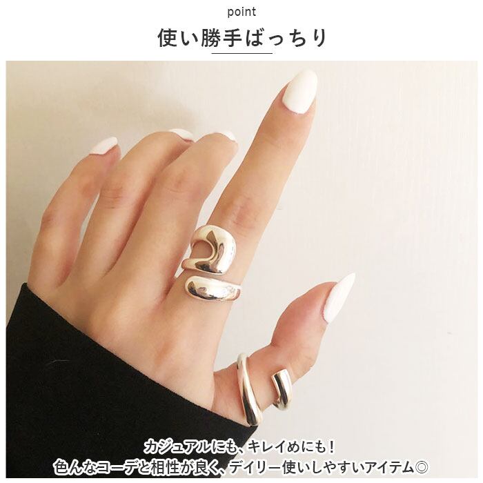 ・ロールリングとループリングの2点セット。存在感がありつつ、シンプルで大人な印象に。