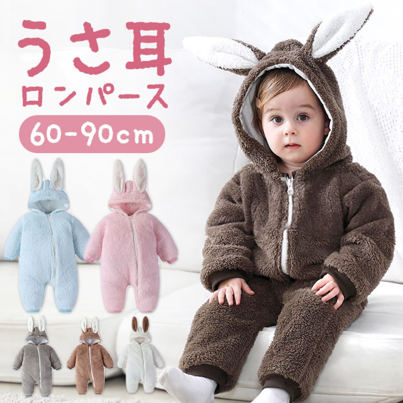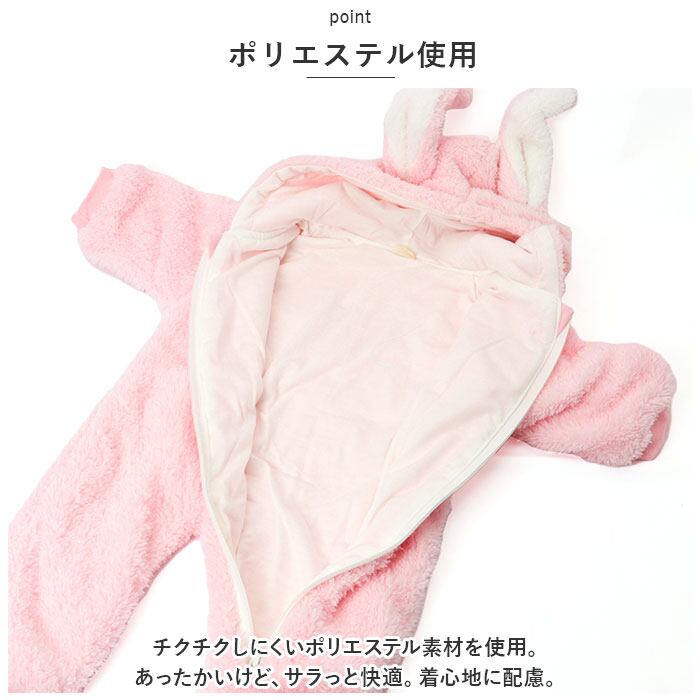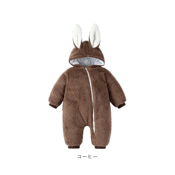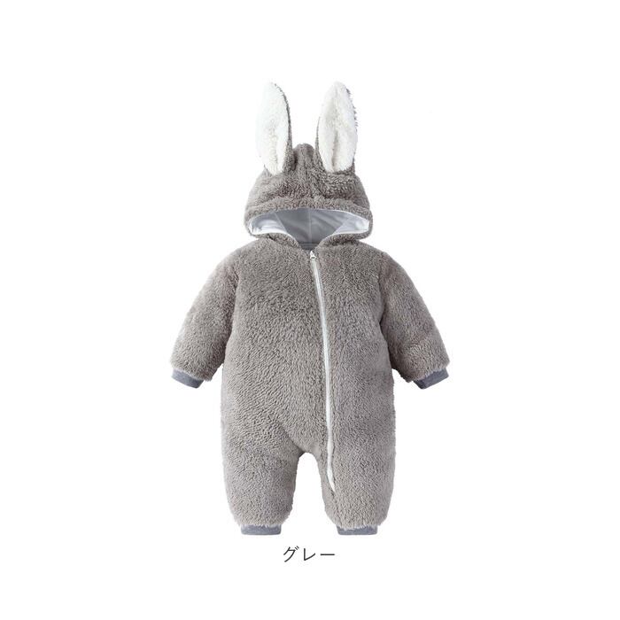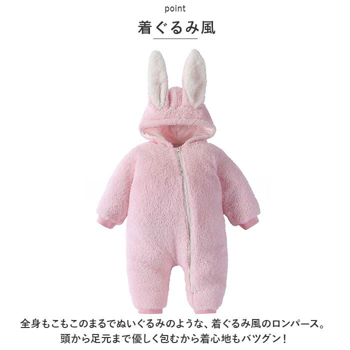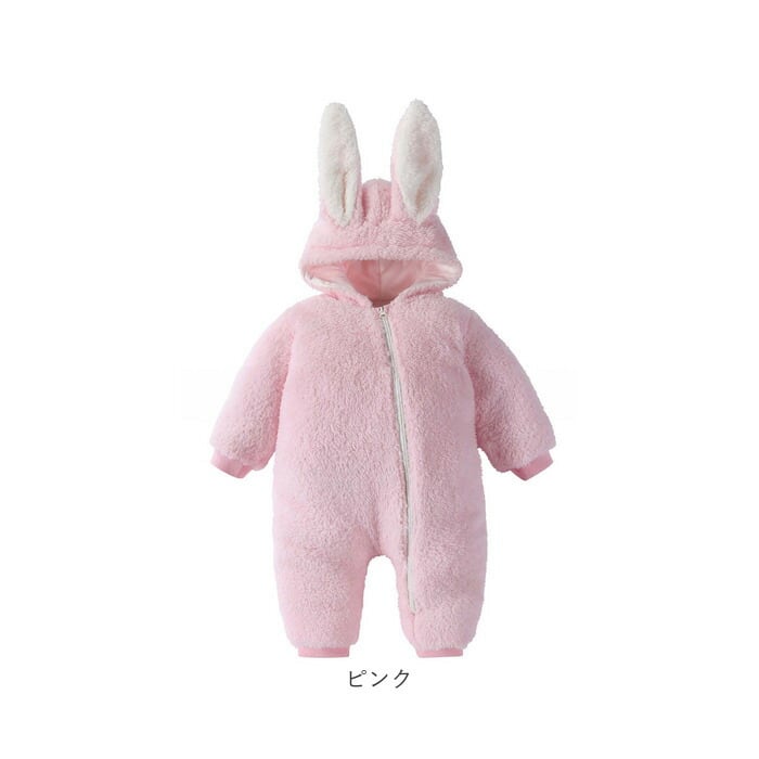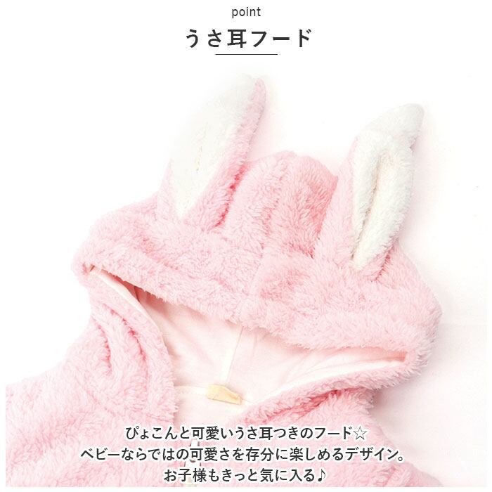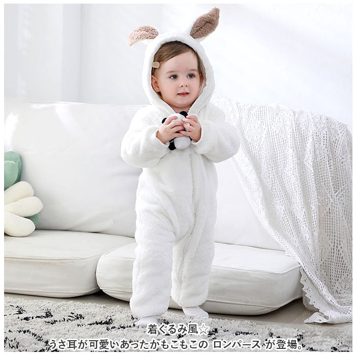 ・着ぐるみ風☆うさ耳が可愛いあったかもこもこの ロンパース が登場。