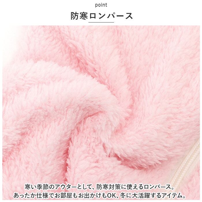 ・寒い季節のアウターとして、防寒対策に使えるロンパース。あったか仕様でお部屋もお出かけもOK、冬に大活躍するアイテム。