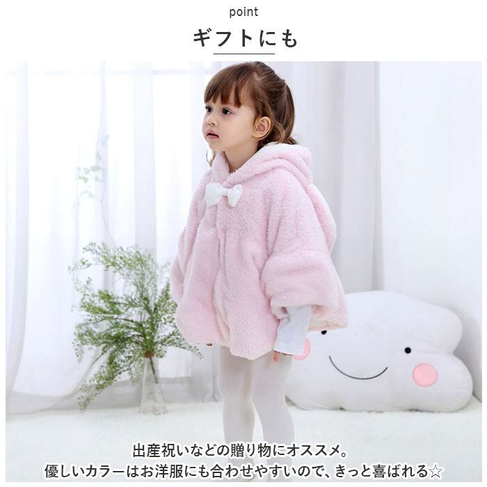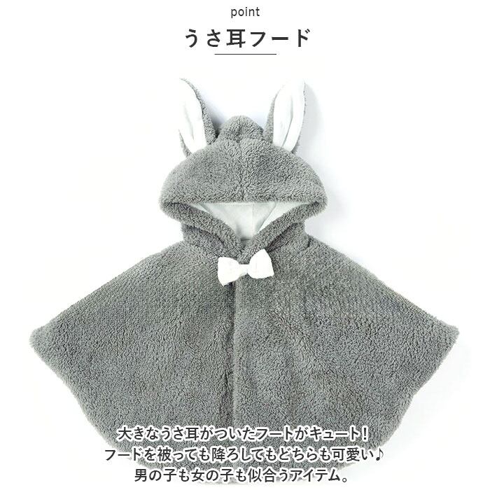 ベビー ポンチョ 防寒 通販 マント コート アウター ケープ 防寒着 上着 トップス フード付き 耳付き 女の子 キッズ 暖かい 秋 冬 お出かけ お散歩 可愛い おしゃれ ベビー用品 子供服 ベビー服 ベビーファッション ギフト
