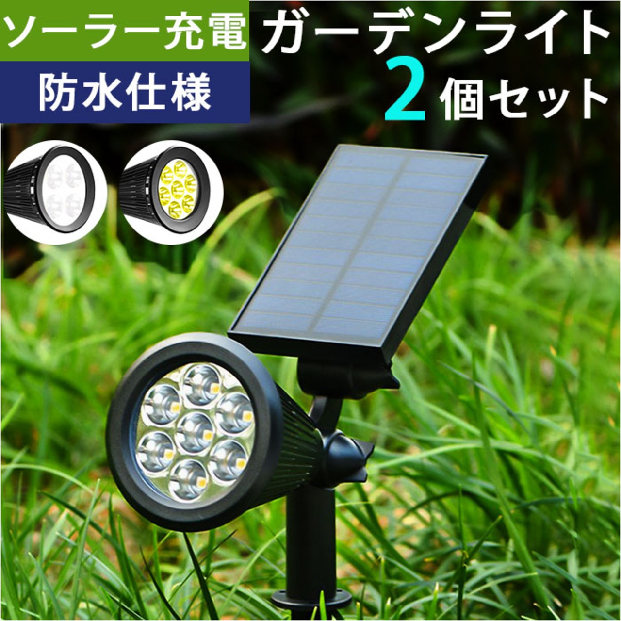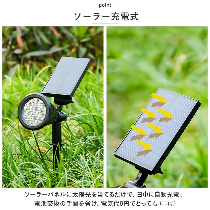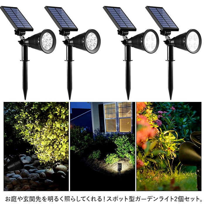 ソーラー LED ガーデンライト 2個セット 通販 ソーラーライト スポットライト LEDライト 屋外 野外 IP65 防水 照度センサー 玄関 庭 アウトドア 防犯 防災 埋め込み LEDガーデンライト ガーデン ガーデンファニチャー エクステリア 屋外照明