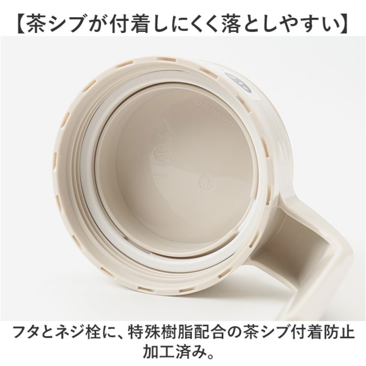 ・フタとネジ栓に、特殊樹脂配合の茶シブ付着防止加工済み。