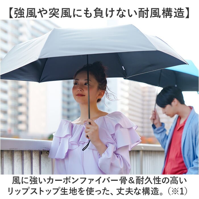 ・風に強いカーボンファイバー骨&耐久性の高いリップストップ生地を使った、丈夫な構造。