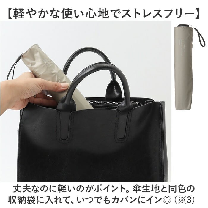 ・丈夫なのに軽いのがポイント。傘生地と同色の収納袋に入れて、いつでもカバンにイン◎