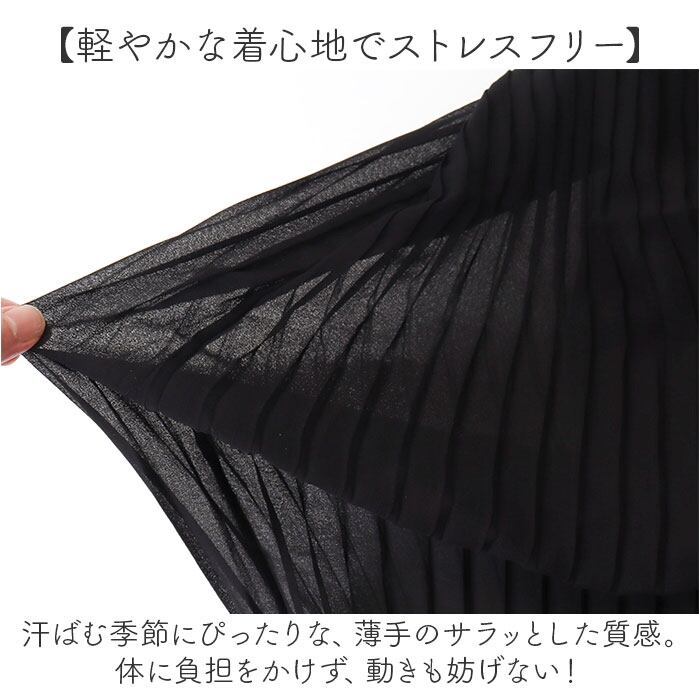 ・ボディラインを締め付けず、すとんと落ちるシルエット。細めのプリーツラインがおしゃれ♪