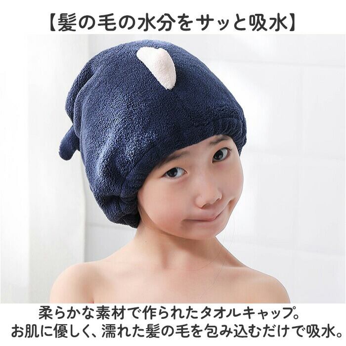 ・お風呂上がりやプールの後に大活躍◎ふんわり素材の「キッズタオルキャップ」。