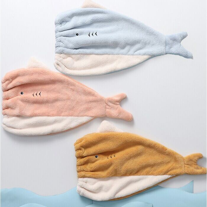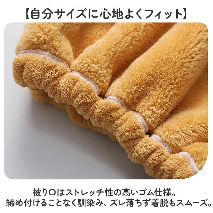 ・柔らかな素材で作られたタオルキャップ。お肌に優しく、濡れた髪の毛を包み込むだけで吸水。