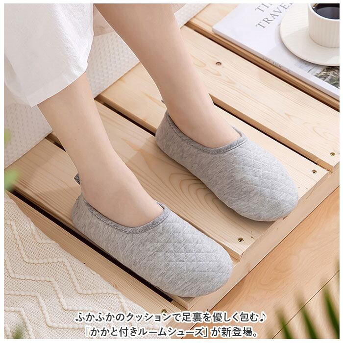 ・ふかふかのクッションで足裏を優しく包む♪「かかと付きルームシューズ」が新登場。