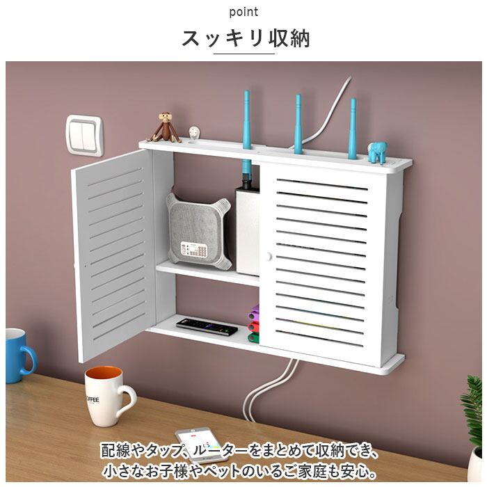 ルーター 収納 壁掛け 通販 ルーター収納ケース ウォールラック ラック 棚 シェルフ 収納棚 扉付き ボックス 収納ボックス 壁面収納 スリム コンパクト 電源タップ おしゃれ 白 ホワイト リビング インテリア