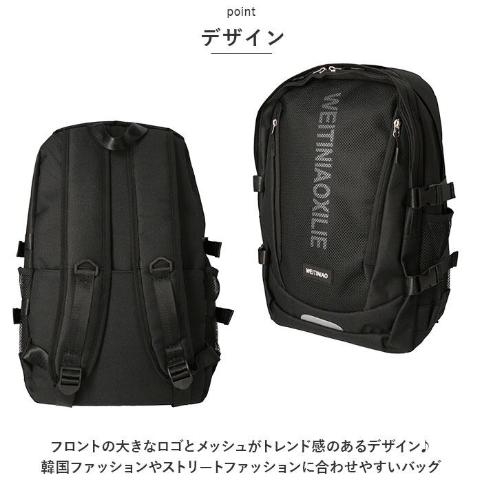 ・フロントの大きなロゴとメッシュがトレンド感のあるデザイン♪韓国ファッションやストリートファッションに合わせやすいバッグ。