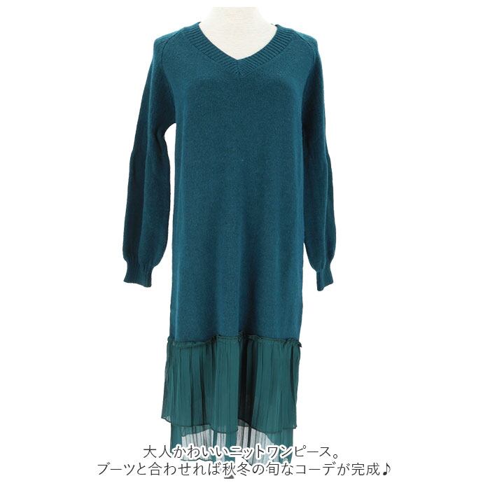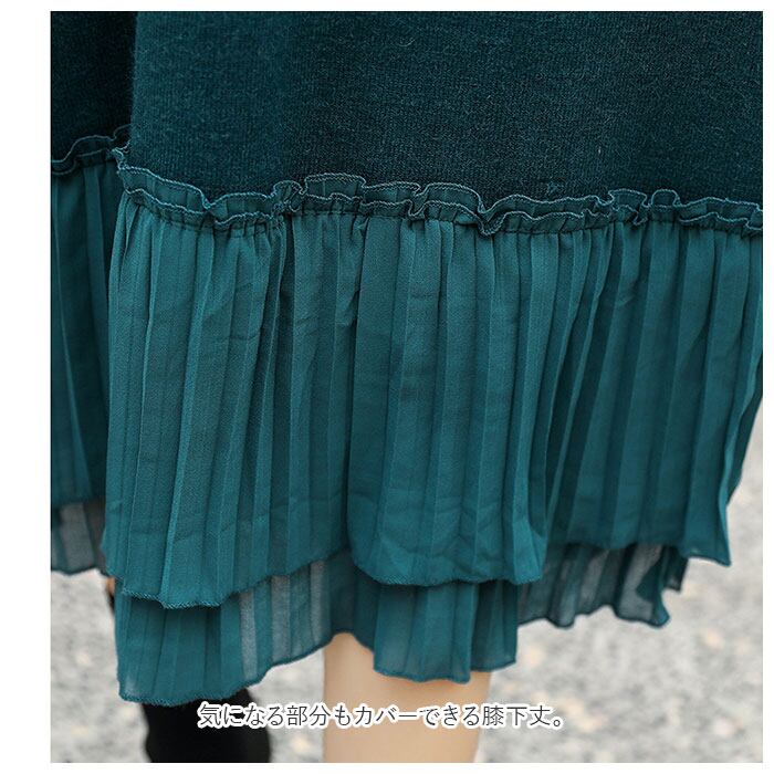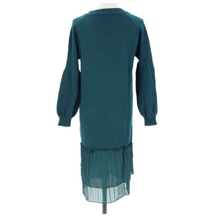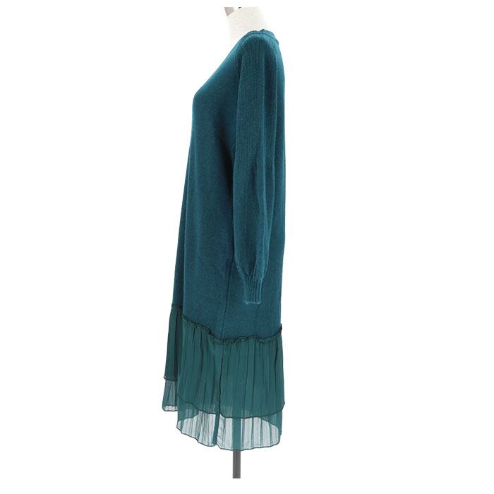 ・足元にプリーツ切り替えを施した、異素材ミックスデザイン。