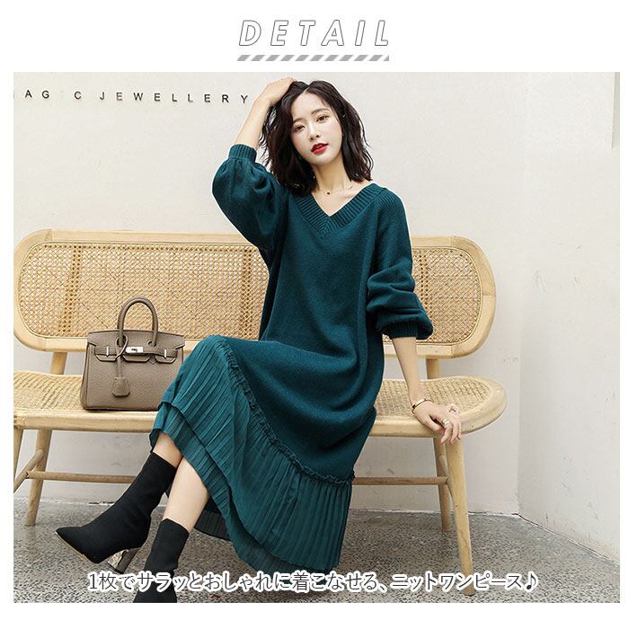 ・1枚でサラッとおしゃれに着こなせる、ニットワンピース♪