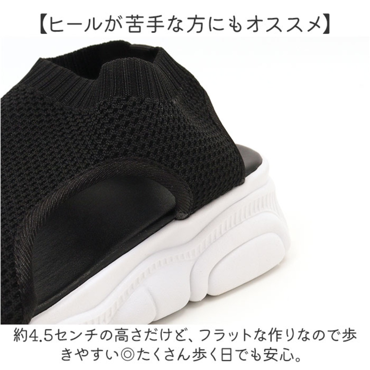 ・約4.5センチの高さだけど、フラットな作りなので歩きやすい◎たくさん歩く日でも安心。