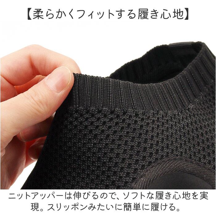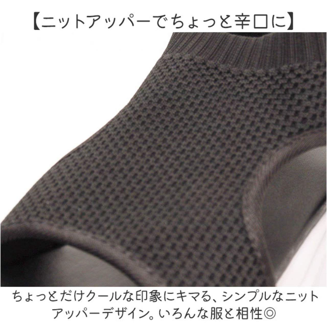 ・ちょっとだけクールな印象にキマる、シンプルなニットアッパーデザイン。いろんな服と相性◎