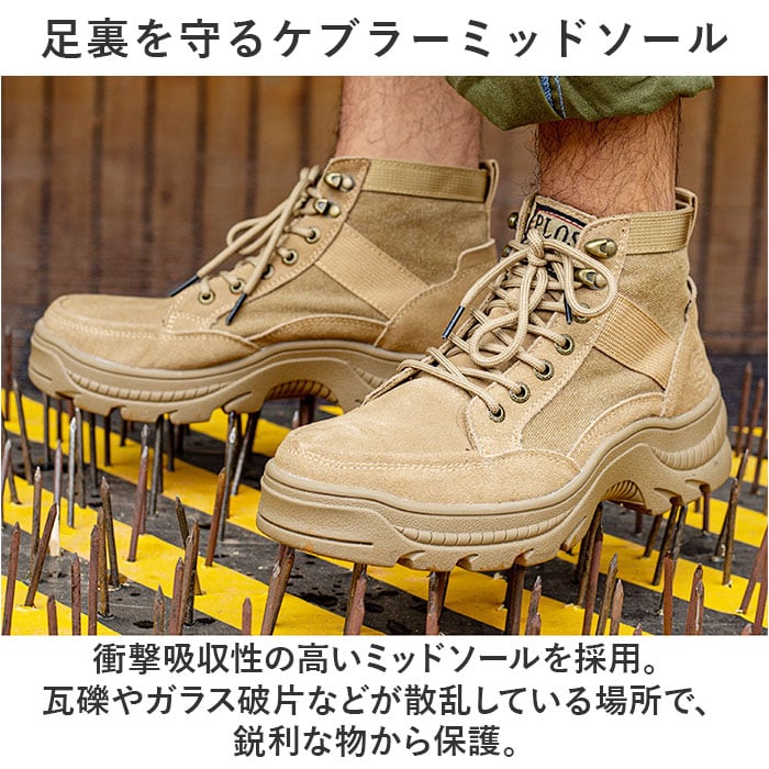 ・衝撃吸収性の高いミッドソールを採用。瓦礫やガラス破片などが散乱している場所で、鋭利な物から保護。