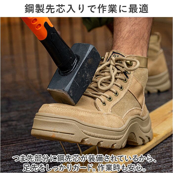 ・つま先部分に鋼先芯が装備されているから、足先をしっかりガード。作業時も安心。