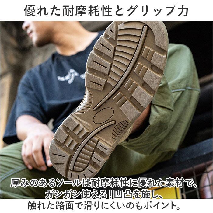 ・作業靴とは思えない見た目で、カジュアルなコーデにもマッチ。普段使いにも!