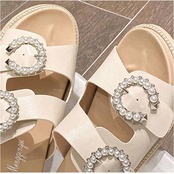 ・フロントの大きくきらめくビジューがアクセント。ルーズだけど、エレガントさを忘れずに足元を華やかに演出♪