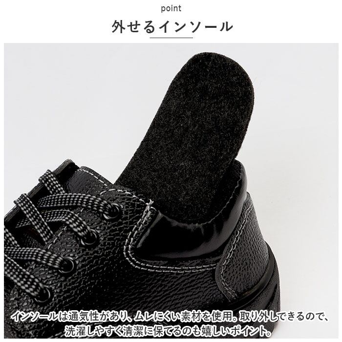 ・インソールは通気性があり、ムレにくい素材を使用。取り外しできるので、洗濯しやすく清潔に保てるのも嬉しいポイント。