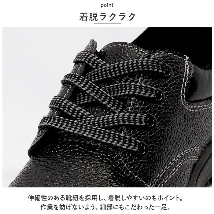・伸縮性のある靴紐を採用し、着脱しやすいのもポイント。作業を妨げないよう、細部にもこだわった一足。
