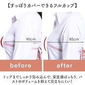 ・トップまでしっかり包み込んで、安定感ばっちり。バストのボリュームを抑えて目立ちにくい!