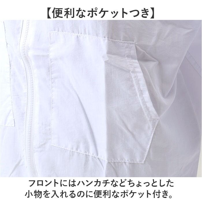 ・すっぽり被れる大きめのフード付き。ちょっとした雨よけや、顔周りの日差し除けに。