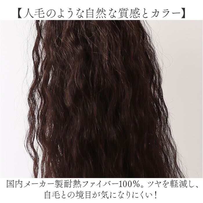 ・国内メーカー製耐熱ファイバー100%。ツヤを軽減し、自毛との境目が気になりにくい!