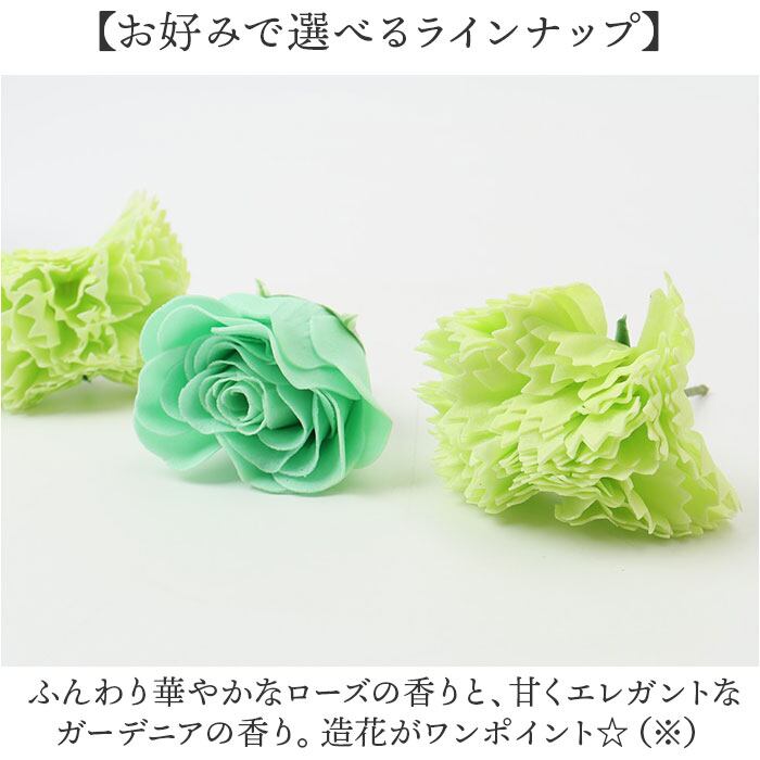 ・ふんわり華やかなローズの香りと、甘くエレガントなガーデニアの香り。造花がワンポイント☆