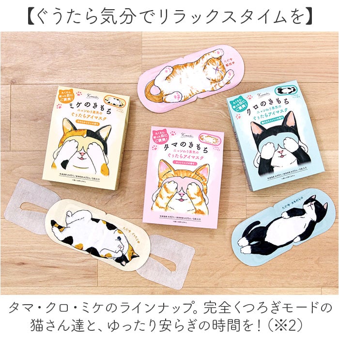 ・目元を温めて気分もほぐれ、猫のきもち♪「ニャンわり蒸気のぐぅたらアイマスク 5枚入り」。