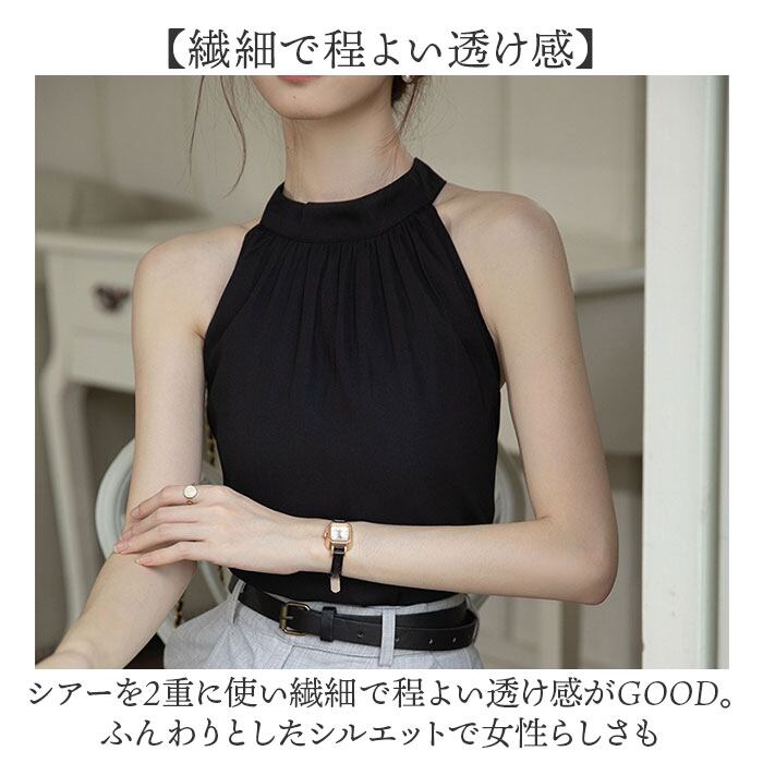 ・程よい透け感とノースリーブで上品な肌魅せ☆様々なシーン使えるタンクトップが新発売。