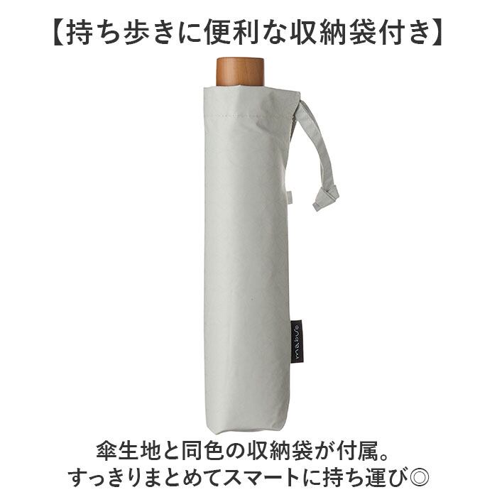 ・傘生地と同色の収納袋が付属。すっきりまとめてスマートに持ち運び◎