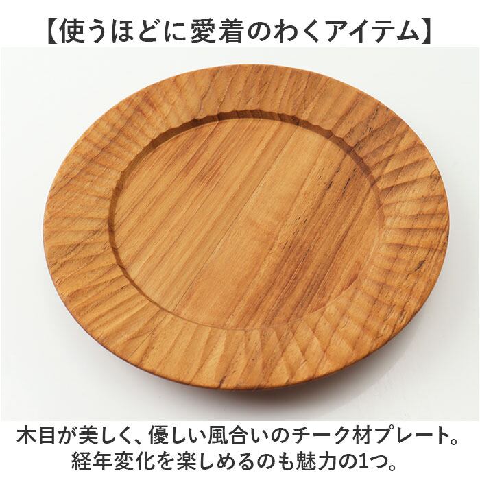 ・木目が美しく、優しい風合いのチーク材プレート。経年変化を楽しめるのも魅力の1つ。