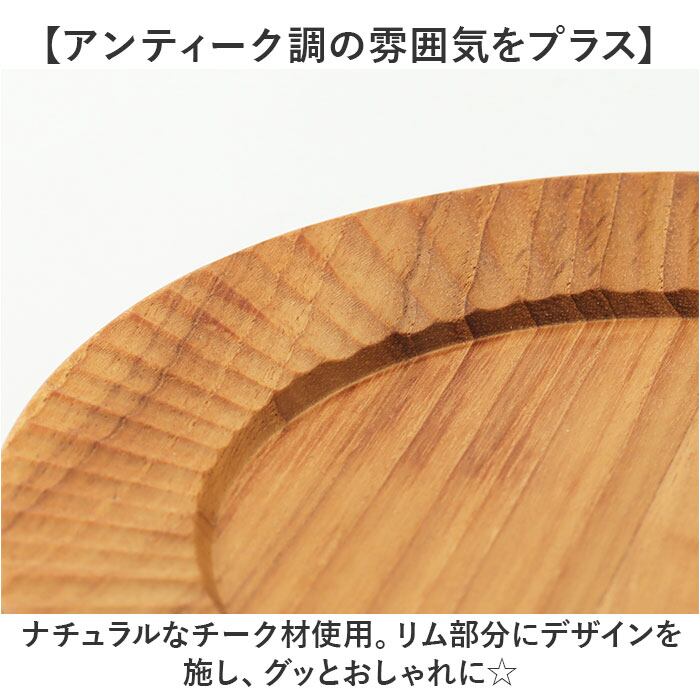 ・ナチュラルなチーク材使用。リム部分にデザインを施し、グッとおしゃれに☆