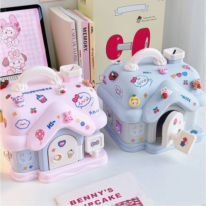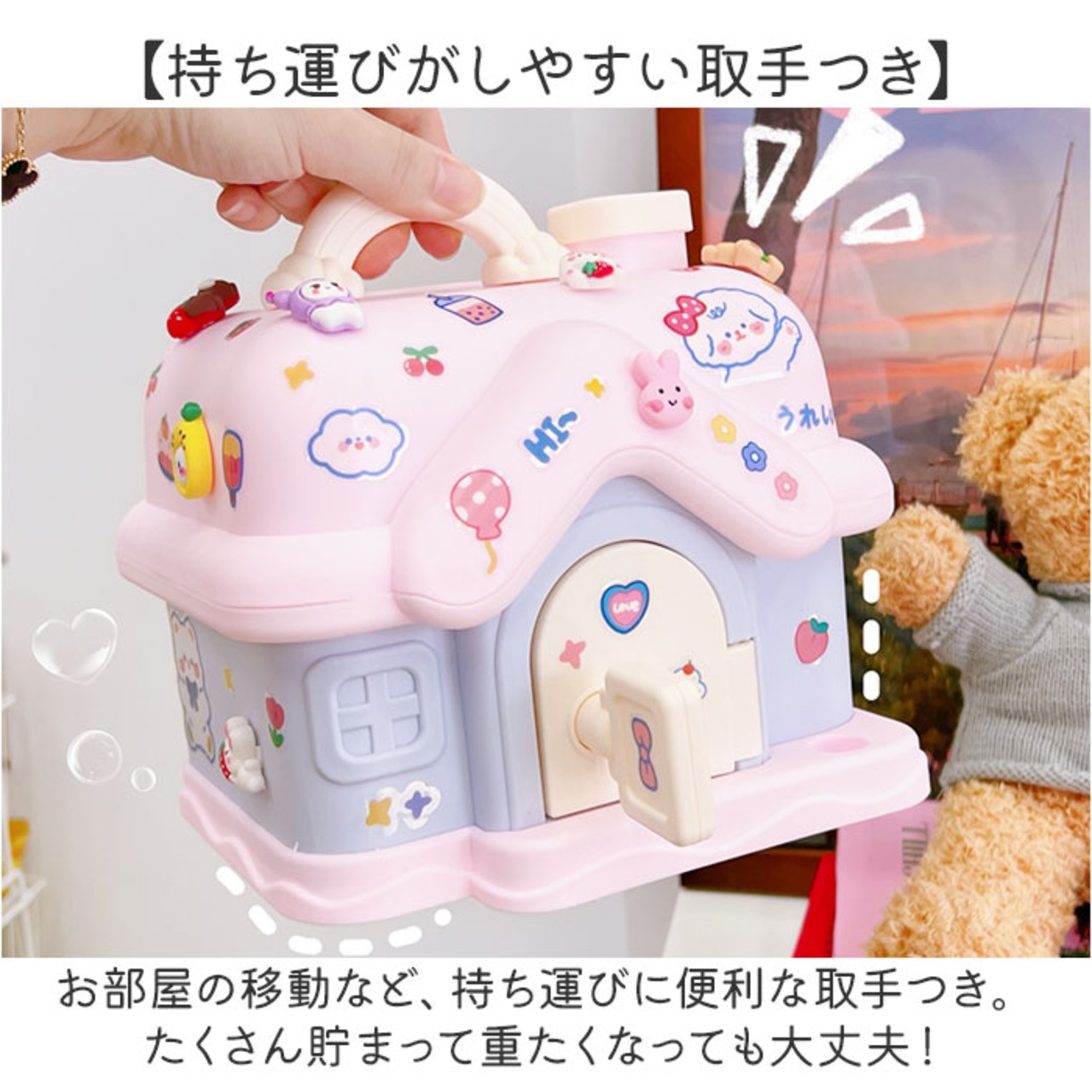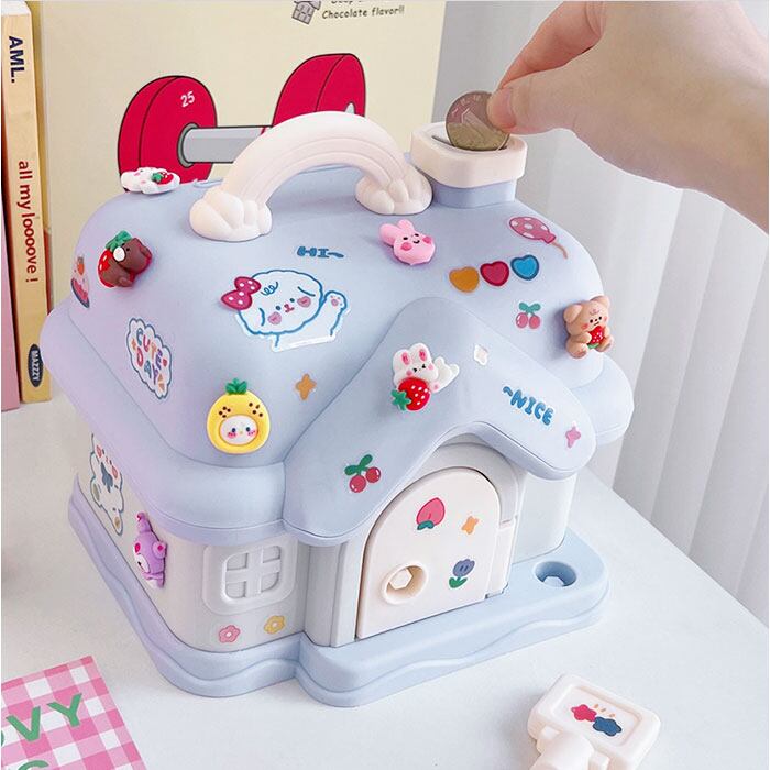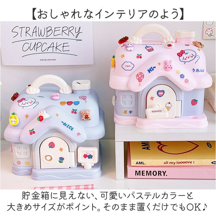 貯金箱 子供 女の子 かわいい 通販 子供用貯金箱 子ども用貯金箱 コインボックス 手提げ金庫 金庫 おもちゃ 大容量 宝物 宝箱 玩具 鍵 おこづかい 家型 ハウス型 子ども用 こども 子ども 可愛い 硬貨 コイン お札 紙幣 インテリア