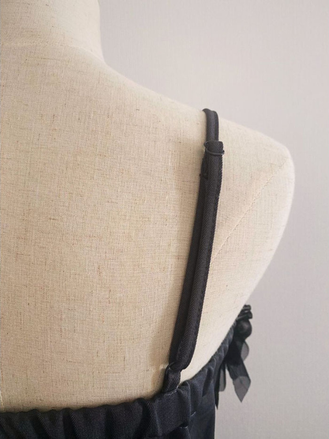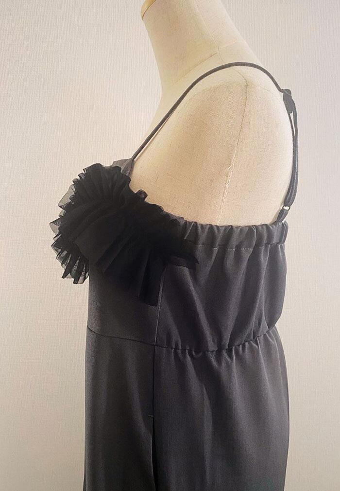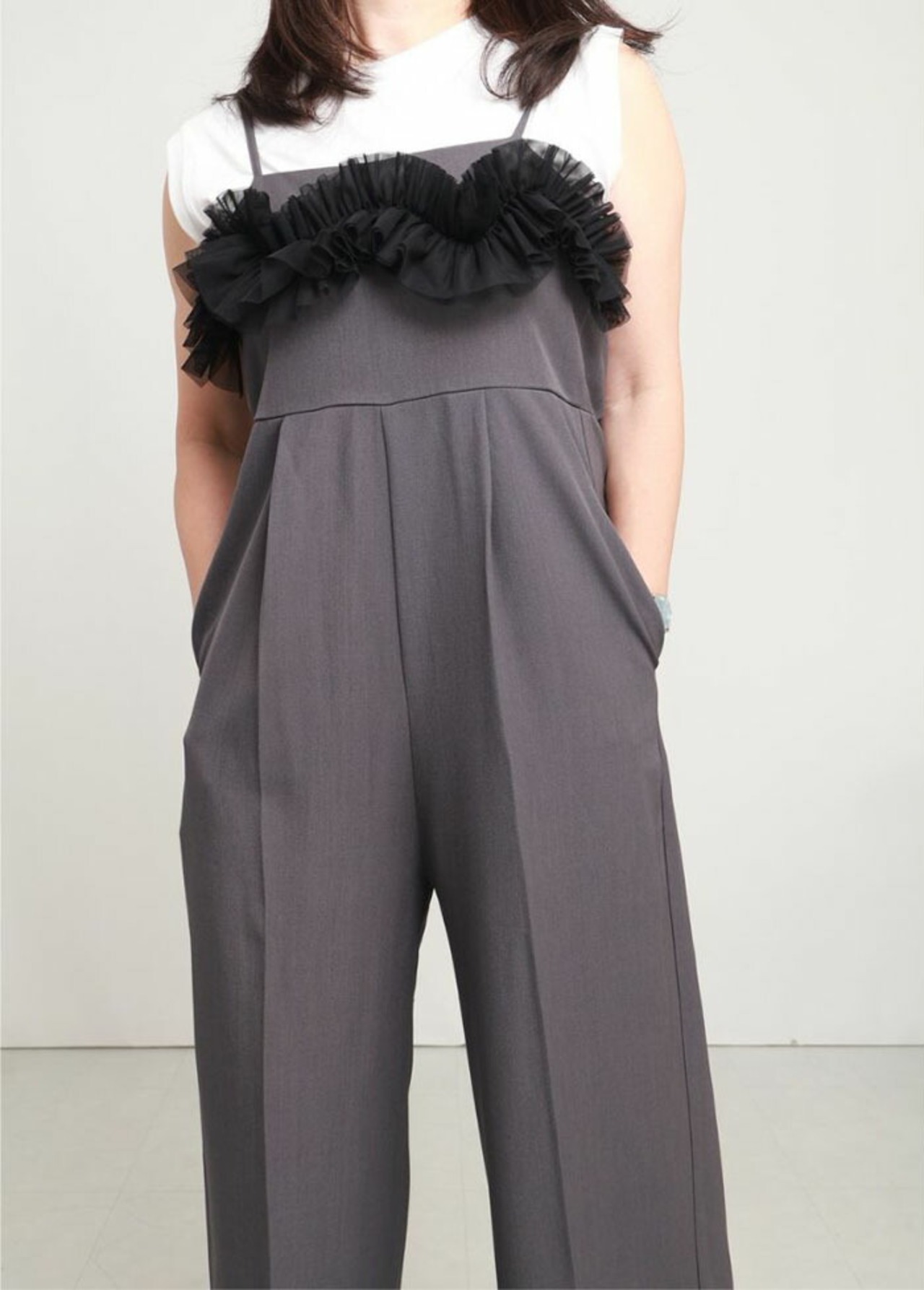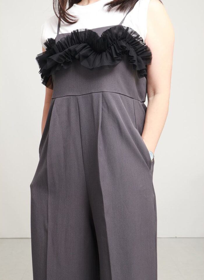 ・胸元にあしらわれたチュールがポイントのオールインワン
