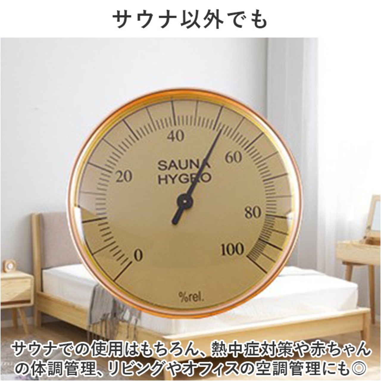 ・サウナでの使用はもちろん、熱中症対策や赤ちゃんの体調管理、リビングやオフィスの空調管理にも◎