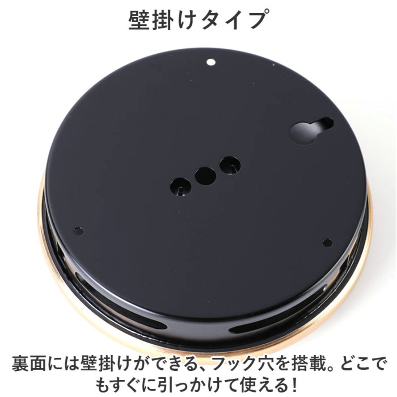 ・裏面には壁掛けができる、フック穴を搭載。どこでもすぐに引っかけて使える!