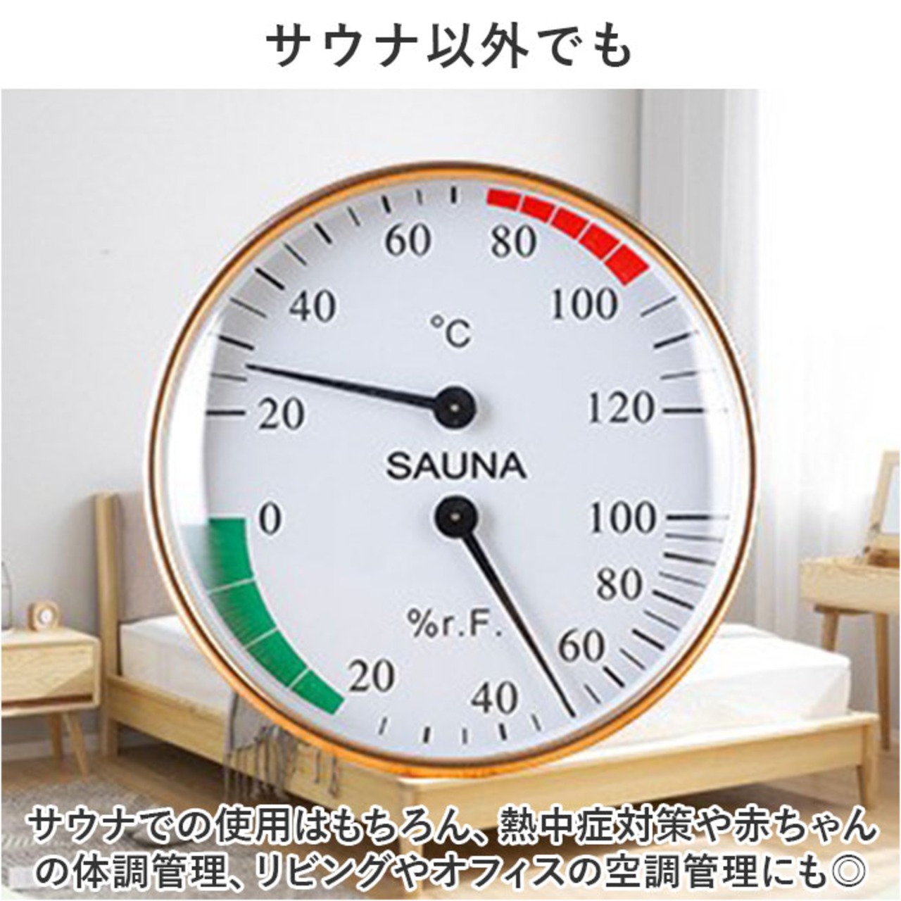 ・サウナでの使用はもちろん、熱中症対策や赤ちゃんの体調管理、リビングやオフィスの空調管理にも◎