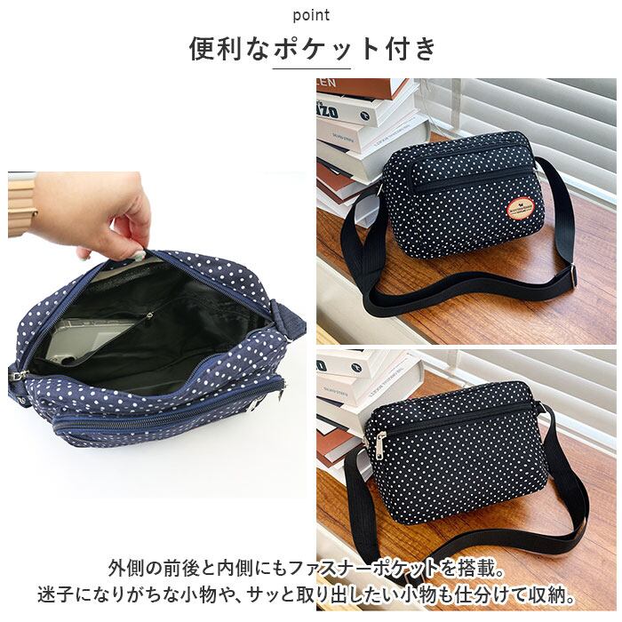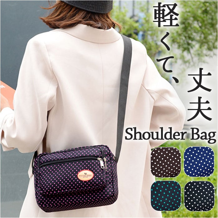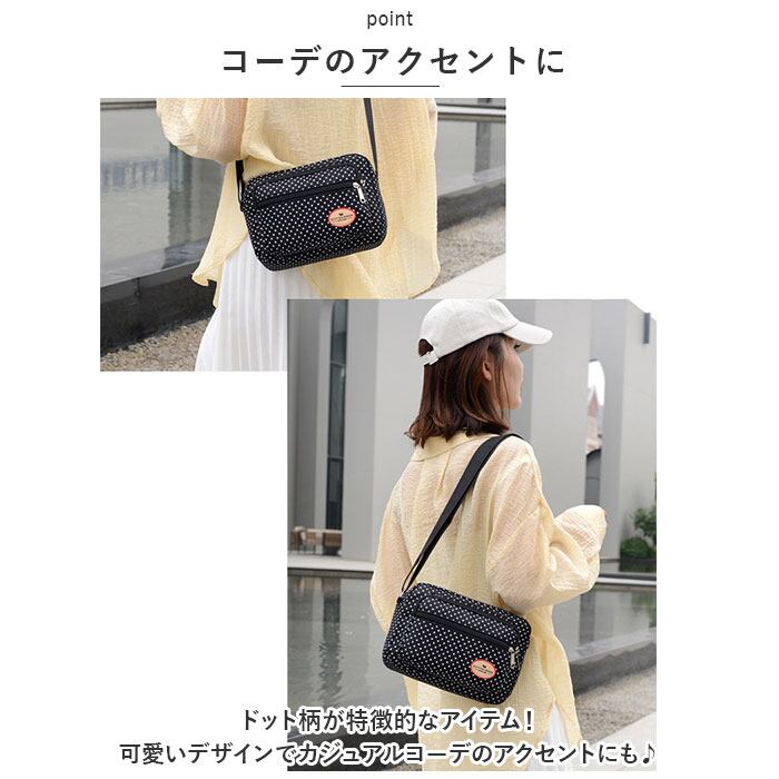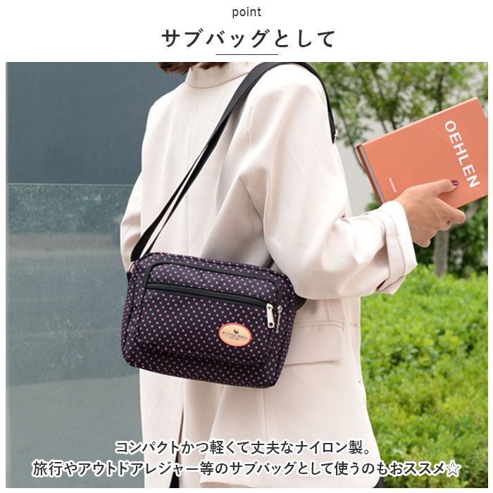 ショルダーバッグ レディース 斜めがけ 大人 通販 ショルダーバック ショルダー バック 斜め掛け バッグ 小さめ 横型 ナイロン 軽い 軽量 おしゃれ ドット 水玉 かわいい 通勤 通学 サブバッグ 旅行 アウトドア スポーツ レディースバッグ