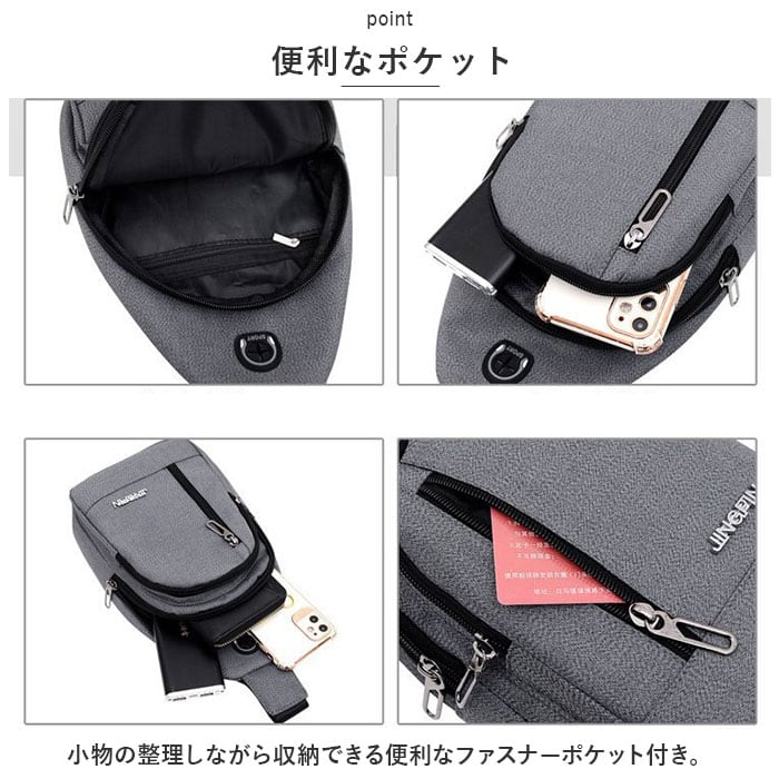 ・小物の整理しながら収納できる便利なファスナーポケット付き。
