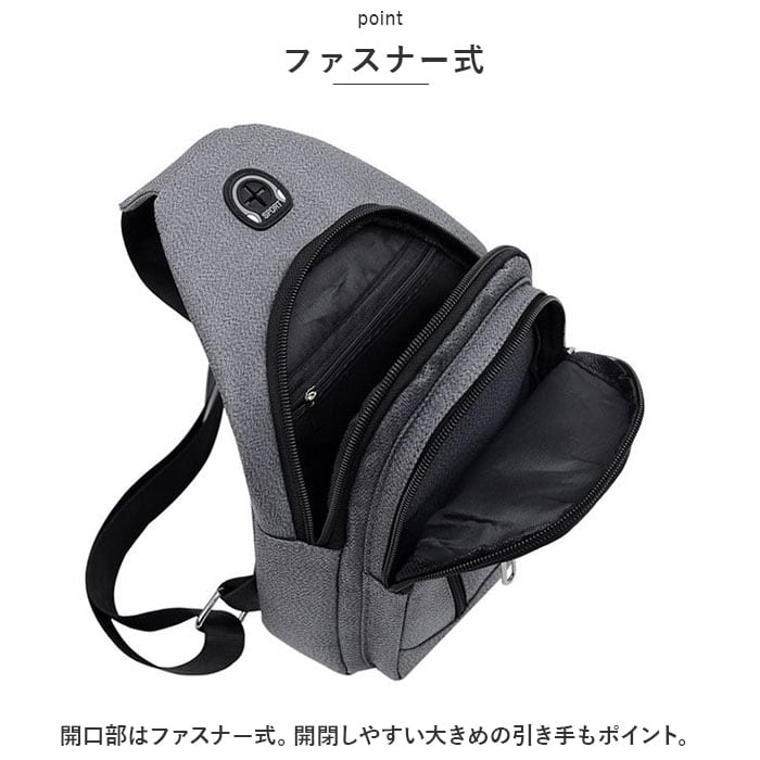 ・開口部はファスナー式。開閉しやすい大きめの引き手もポイント。